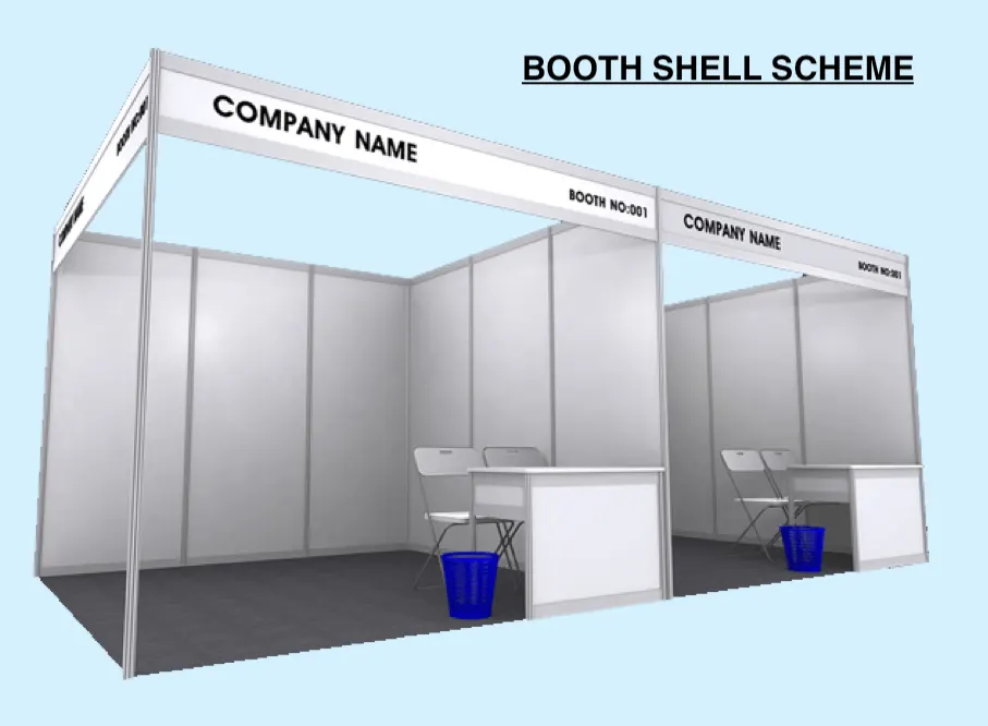 - 1 unit standard exhibition booth (approx. 3m x 3m) with fascia board